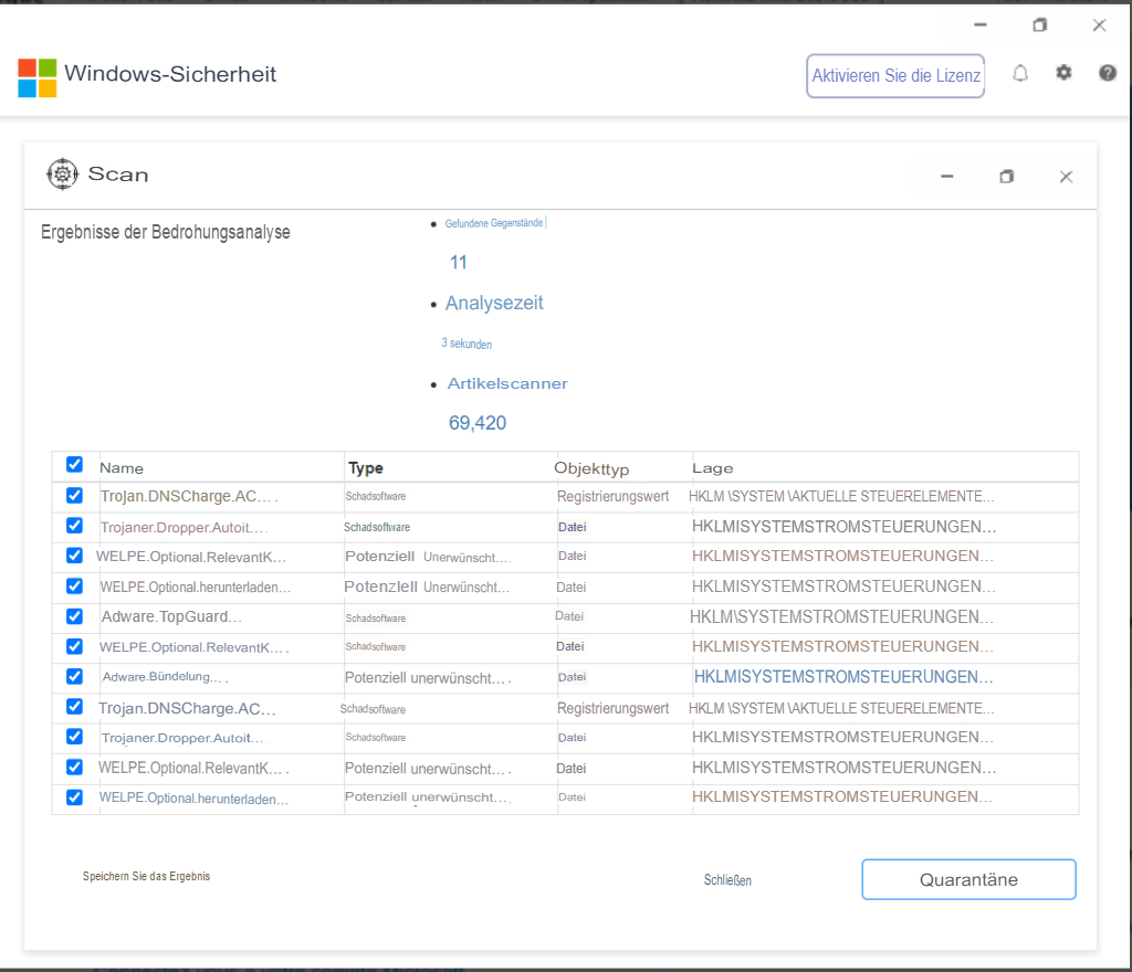 Wenn Sie dieses Fenster schließen, gefährden Sie Ihre persönlichen Daten und Ihre Windows-Registrierung wird möglicherweise gesperrt.